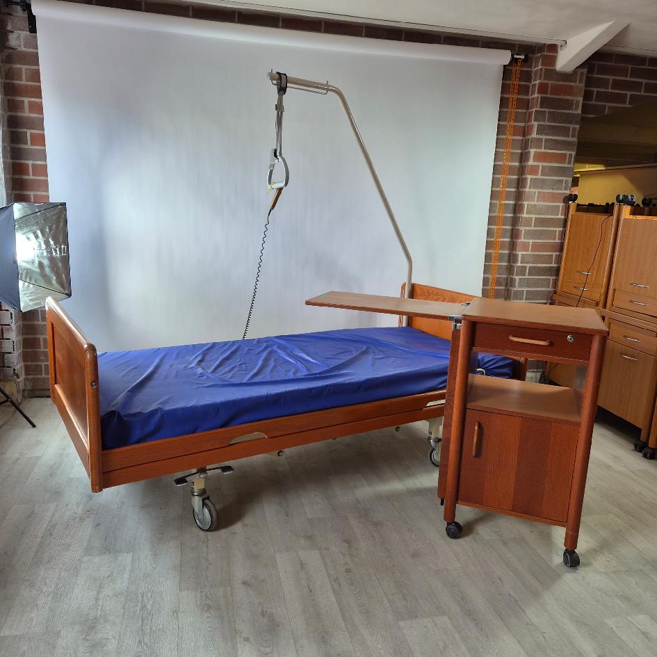 Polohovací postel, pečovatelský stolek, hrazda s úchytem, hygienicky ošetřená matrace v paropotahu