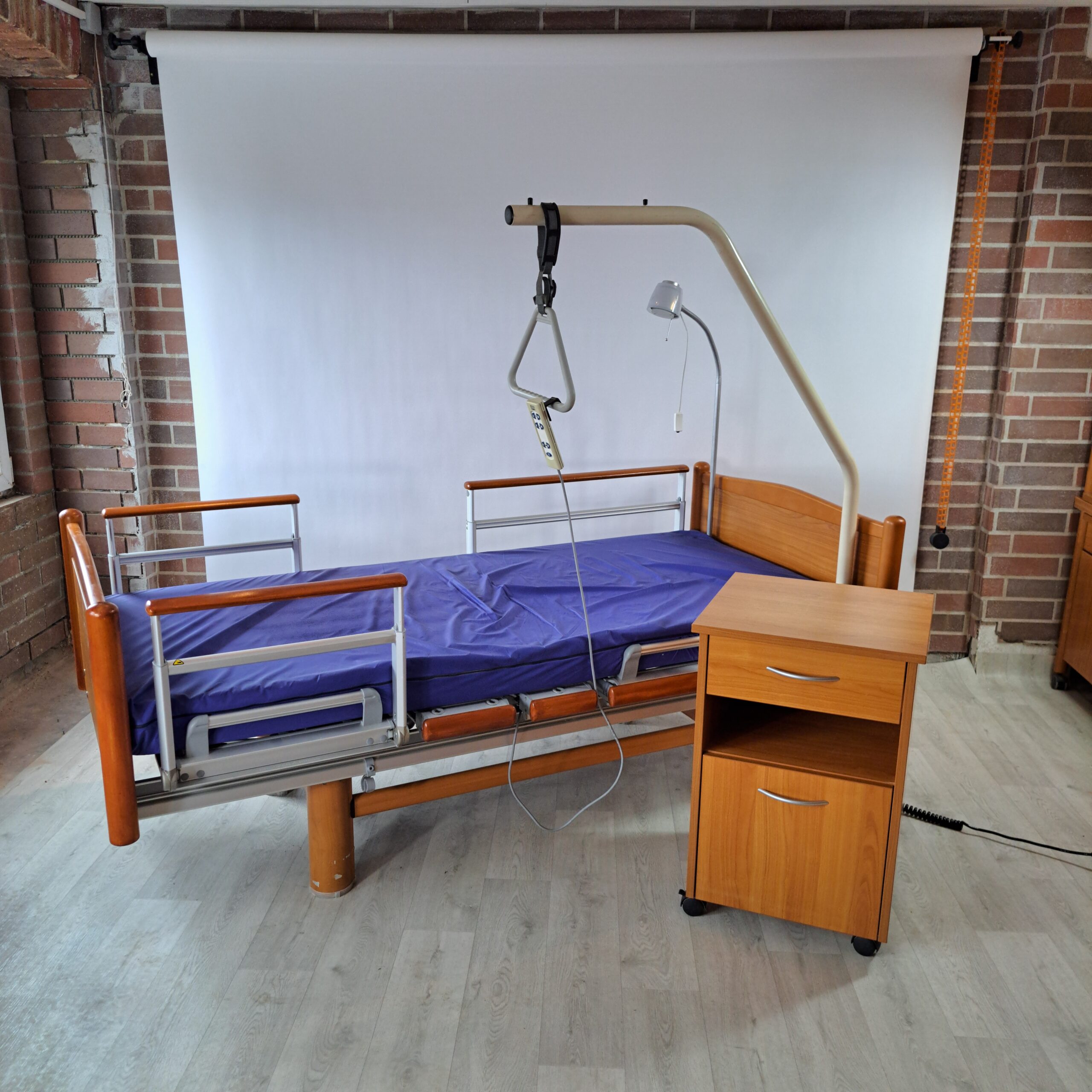 Elektricky polohovatelná repasovaná postel od německého výrobce Völker model 3080 v třešnovém odstínu ve zvýhodněném setu: